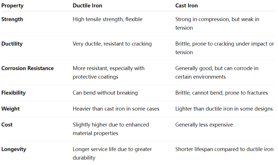 연성 철 파이프와 주철 파이프의 주요 차이점