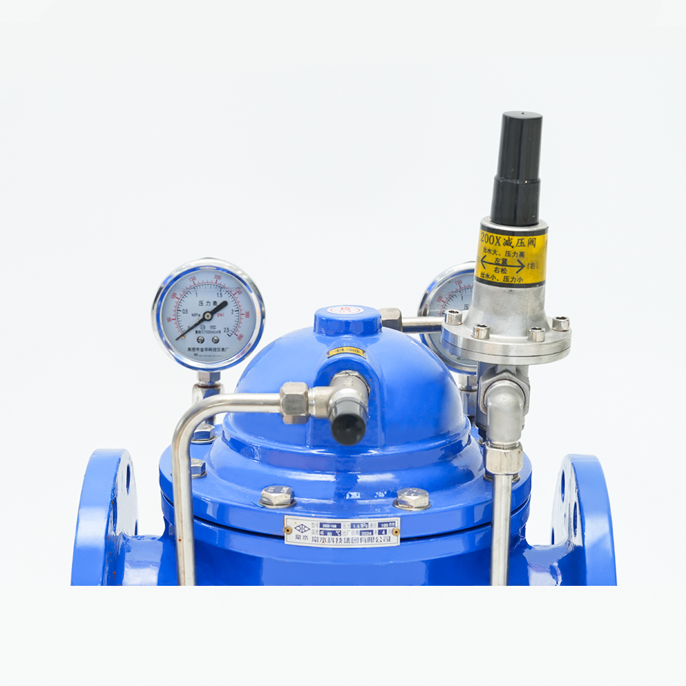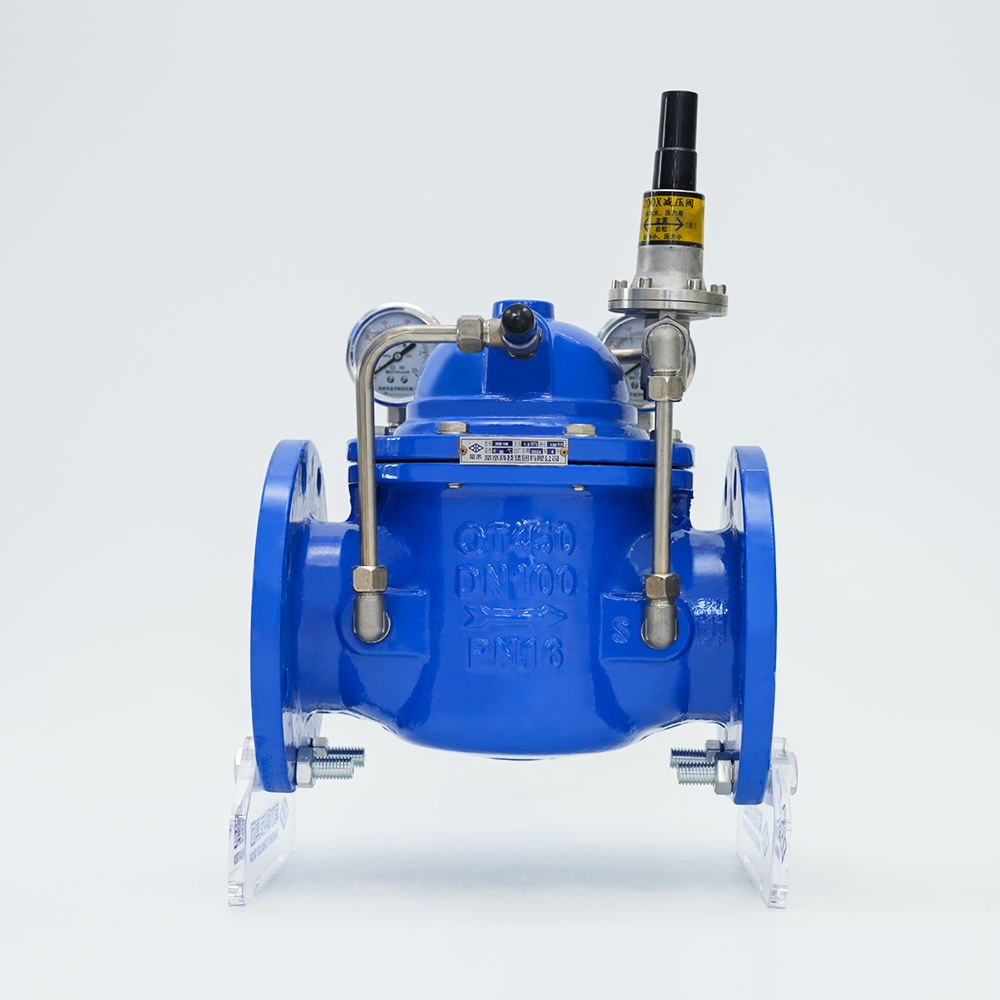 조절식 감압밸브는 다이어프램식 유압작동식으로 급배수 시스템에 설치되어 메인밸브의 출구압력을 일정한 값으로 제어하는 밸브이다. 파일럿 밸브를 조정하여 입구 압력을 필요한 출구 압력으로 낮출 수 있으며 매체 자체의 에너지에 의존하여 출구 압력을 안정적으로 유지할 수 있습니다. 즉 입구 압력이나 출구 흐름의 변화로 인해 출구 압력이 변하지 않습니다. 밸브 앞의 압력이 밸브 뒤의 설정 압력보다 낮아지면 메인 밸브가 자동으로 천천히 닫힙니다.