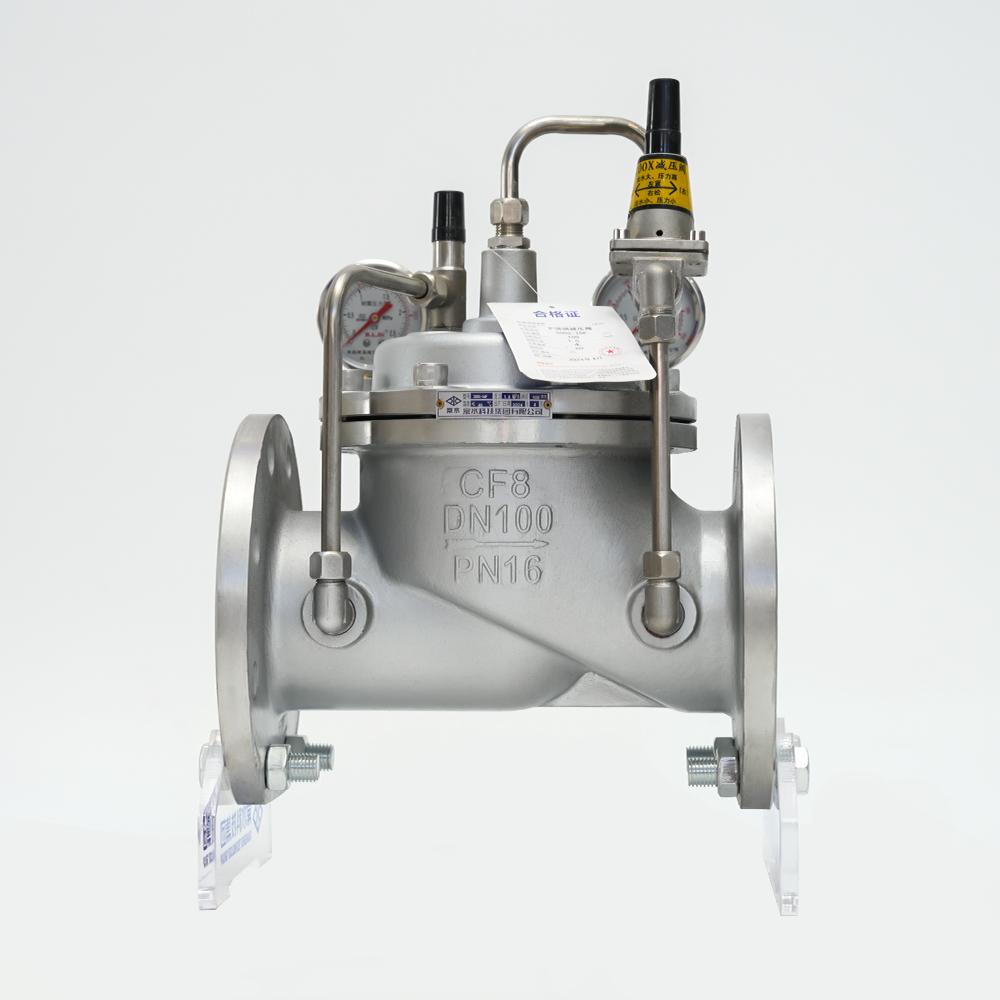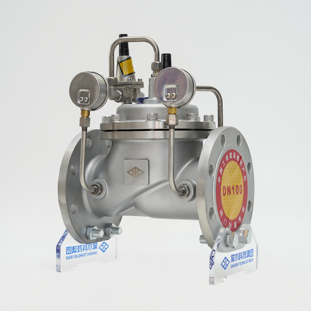 조절식 감압밸브는 다이어프램식 유압작동식으로 급배수 시스템에 설치되어 메인밸브의 출구압력을 일정한 값으로 제어하는 밸브이다. 파일럿 밸브를 조정하여 입구 압력을 필요한 출구 압력으로 낮출 수 있으며 매체 자체의 에너지에 의존하여 출구 압력을 안정적으로 유지할 수 있습니다. 즉 입구 압력이나 출구 흐름의 변화로 인해 출구 압력이 변하지 않습니다. 밸브 앞의 압력이 밸브 뒤의 설정 압력보다 낮아지면 메인 밸브가 자동으로 천천히 닫힙니다.