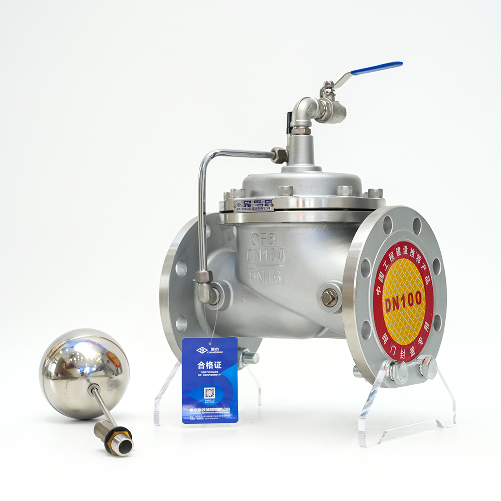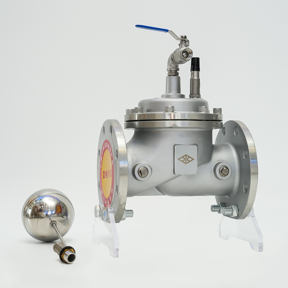 원격 제어 플로트 밸브는 메인 밸브와 외부 가이드 밸브로 구성됩니다. 물속에 뜨는 볼을 이용하여 수위 변화에 따른 가이드 밸브를 연결시켜 메인 밸브가 물을 공급하고 닫히게 함으로써 풀(탱크)과 급수탑의 수위를 일정 범위 내로 제어하여 넘침과 저수위를 방지하는 장치입니다. 이 밸브는 산업 및 광산 기업, 민간 건물의 다양한 수영장(탱크) 및 급수탑의 자동 급수 시스템에 적합하며 대기 보일러 순환 급수 시스템에도 사용됩니다. 메인 밸브는 워터해머 현상 없이 빠르게 열리고 천천히 닫힙니다. 단단히 밀봉되어 있어 침수위험이 없습니다.